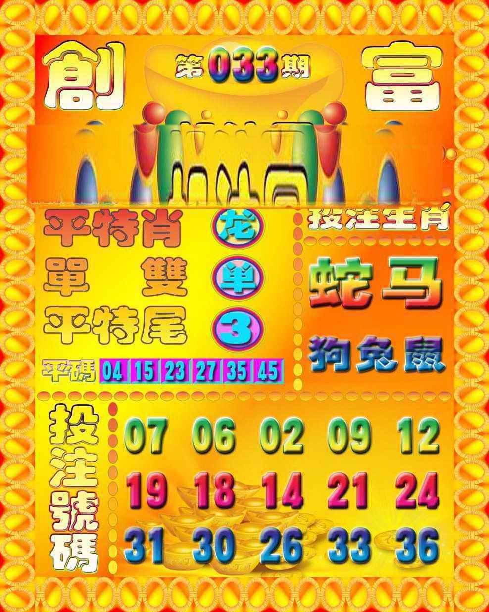 033期:香港六合彩『创富投注图』