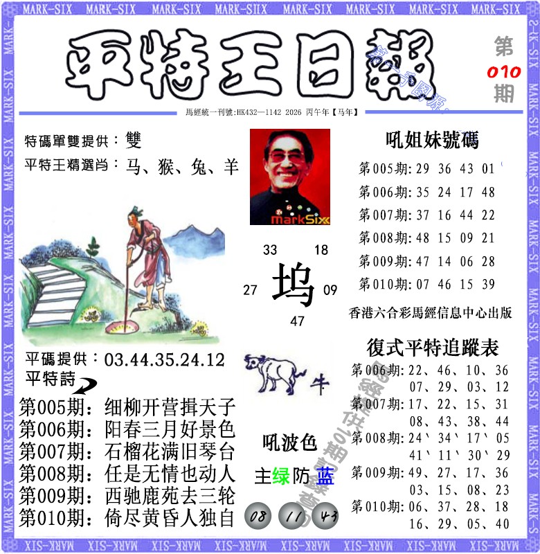 010期: 香港六合彩 『平特心水报』已更新