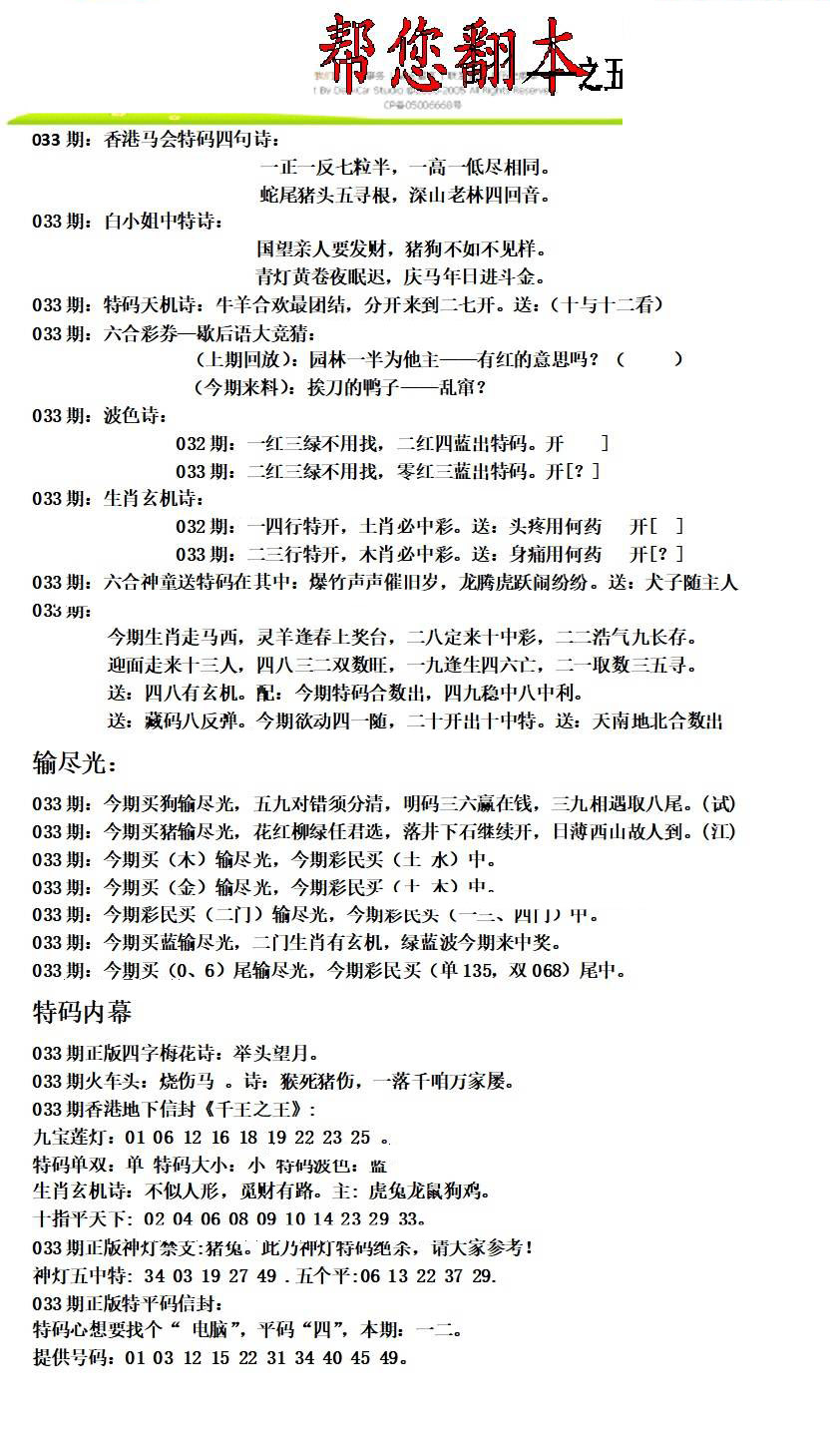033期: 香港六合彩 『帮您翻本B图』已更新