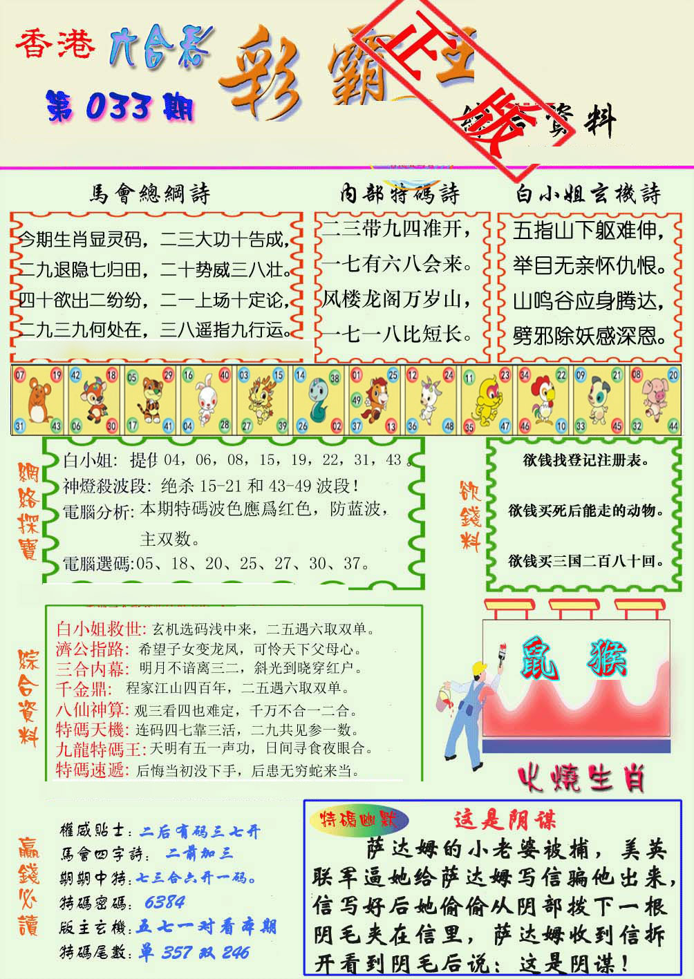 033期: 香港六合彩 『鬼谷子爆肖』已更新